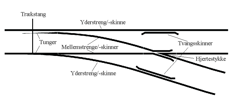 Vi starter med at fortælle, hvad nogle af tingene hedder på et sporskifte: