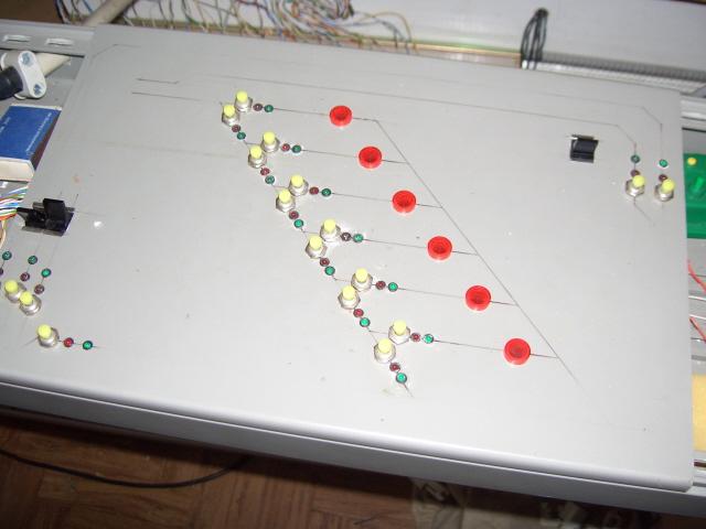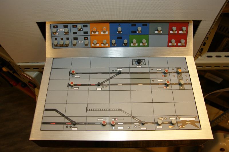 På billederne herunder er der vist et par kontroltavler og nogle komponenter dertil. Alt efter, om det er manuelt eller elektrisk skift, kan betjeningen ske på en tavle som vist på billederne herunder. Eller man kan have knapperne placeret lige ved sporskiftet - enten på anlægget eller på siden af anlægget.