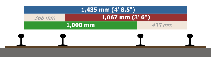 Lige som i virkeligheden findes der andre sporvidder end den, der ligger til grund for str N; altså de 1435 mm.