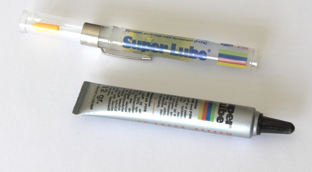 fra firmaet Amko Trading, som hedder "Super Lube". Fordelen ved lige de to produkter er, at de indeholder teflon, som lægger sig beskyttende
