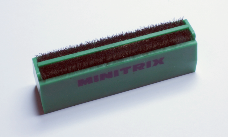 en stålbørste, der skraber skidtet af hjulene. Man stiller den på sporet, og stiller og holder sit tog ovenpå, mens man regulerer hastigheden.