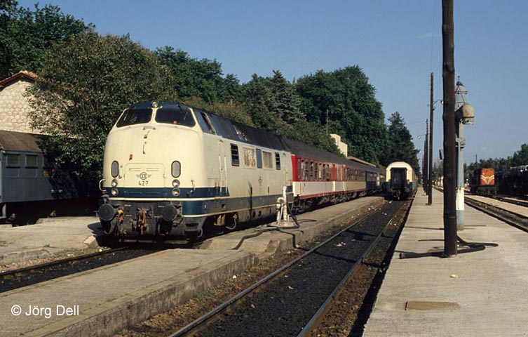 An jeder Ecke gebrauchtes aus Deutschland. Links schlummert ein Umbau-Dreiachser, als A427 in Lianokladi einen Halt einlegt.