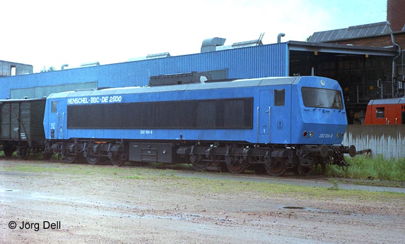 Der "Blaue Bock" (wer hat eigentlich diesen Bock geschossen, als er die Lok so nannte?) 202 004 vor dem BBC-Gelände (9.6.81).