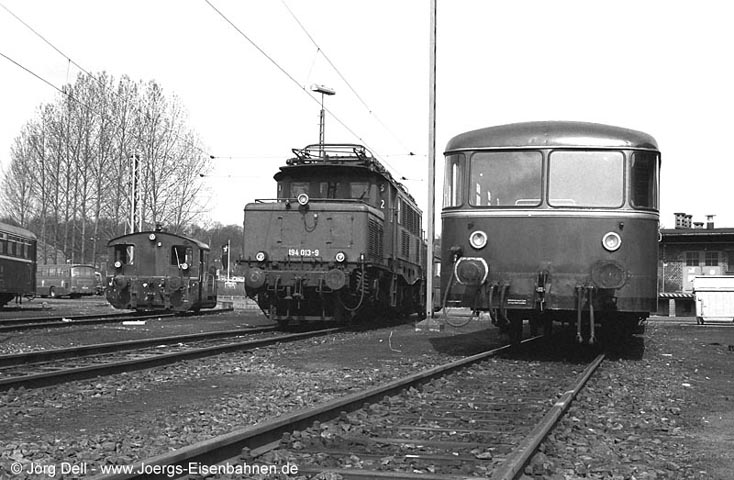 Draußen aber steht das eigentliche Objekt der Begierde: die 194 013, eingerahmt von der KöF 323 118 und 998 859