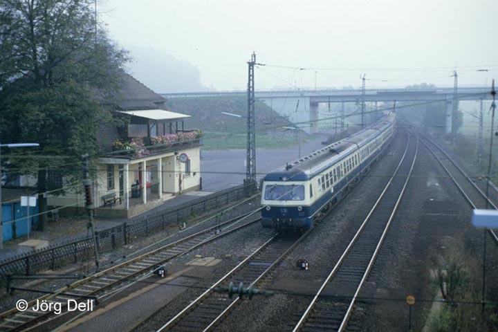 Am 21.9.85 fuhr ein Sonderzug aus Braunschweig durch Wirtheim, gebildet aus einer 614-Doppeleinheit.