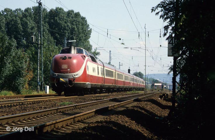 Ein 601 hat als Alpen-See-Express gerade den Bahnhof Hailer-Meerholz durchfahren (21.8.86).