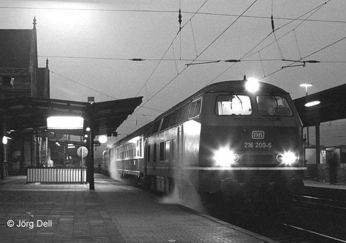 216 200 (Bw Kassel) wartet am 20.11.84 auf Abfahrt nach Gießen.