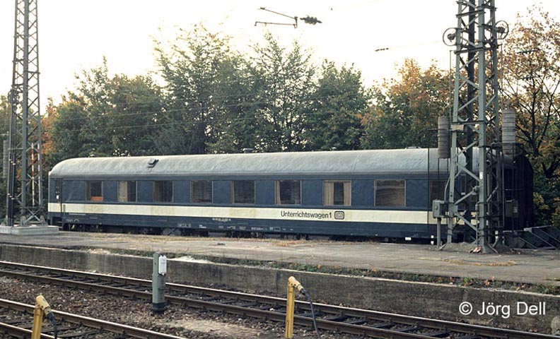 Der Uerdinger Schnellzug-Probewagen AB4üe-49 11802 Hmb diente später als Unterrichtswagen337 99-33 007 (19.10.1990, Karlsruhe)