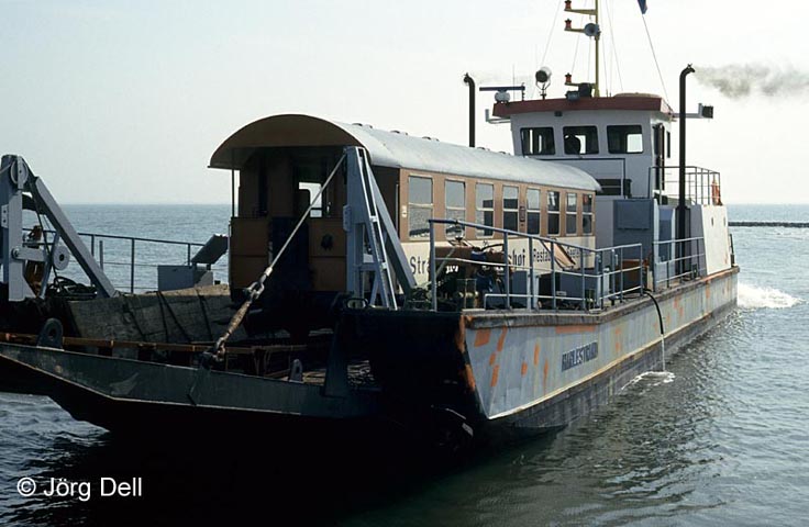 Dann die freudige Überraschung: Die Verladung auf den Kahn, der das Fahrzeug aufs Festland bringen sollte.