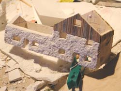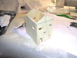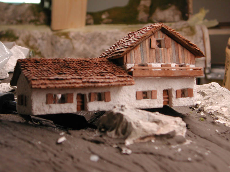 Das noch nicht fertige Haus mal probegestellt. Türen, Fensterrahmen und -läden sowie die Farbgebung fehlen noch. |