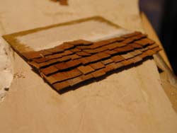 Absolute Fleissarbeit: Das Schindeldach mit einzeln ausgeschnittenen 'Schindeln' aus Holz. |