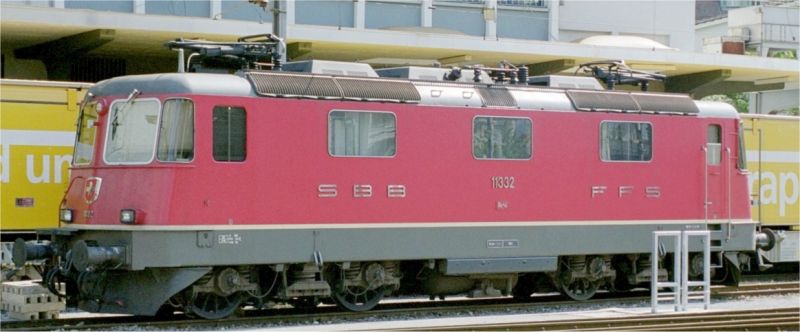 | Schweiziske SBB's 4-akslede elektrolokomotiv Re 4/4 II i rød bemaling | |||