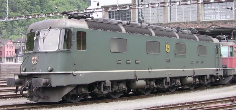 | Schweiziske SBB's elektrolokomotiv af typen Re 6/6 med våbenskjold fra "Linthal" | |||