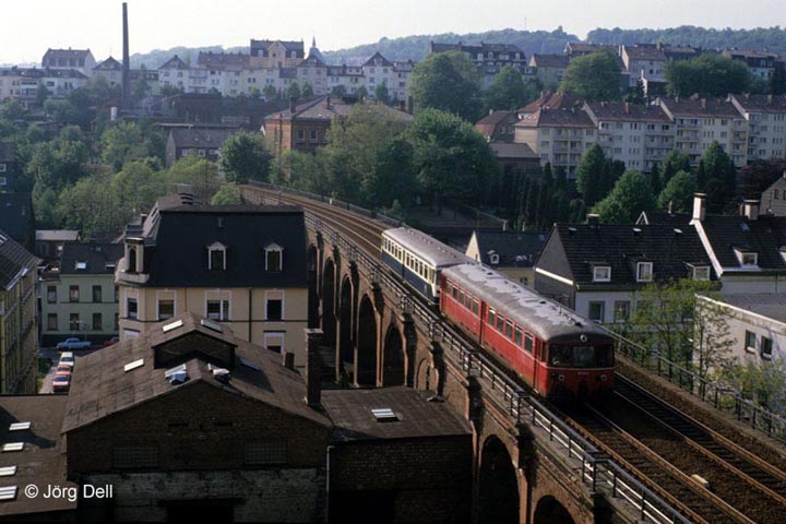 An der bekannten Fotostelle in Wuppertal-Heubruch lässt sich 515 624 blicken, wo heute nur noch Unkraut wuchert.
