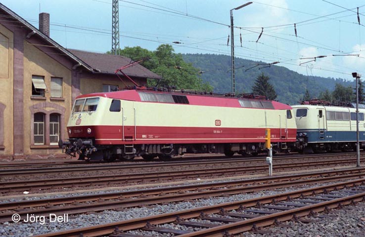 … und 120 004 am 23.6.83 ca. 100 m weiter bereits im Bahnhofsbereich.