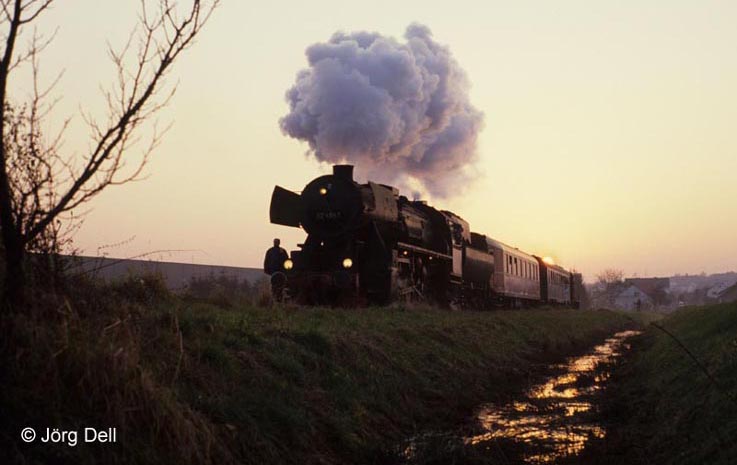 Eine besondere Werbeaktion ließ sich die Firma Möbel-Walter in Lieblos einfallen. Vom 15. bis 19.11.86 veranstaltete sie kostenlose Dampf-Pendelfahrten auf der Rothenberger Anschlussstrecke, die direkt an dem Möbelhaus vorbeiführte. Die Zuggarnitur mit den Loks 52 4867 und 236 406 stellte die HE Frankfurt zur Verfügung (Foto am 16.11.86 in Rothenbergen). Leider blieb diese Aktion einmalig. Die Strecke ist heute abgebaut.