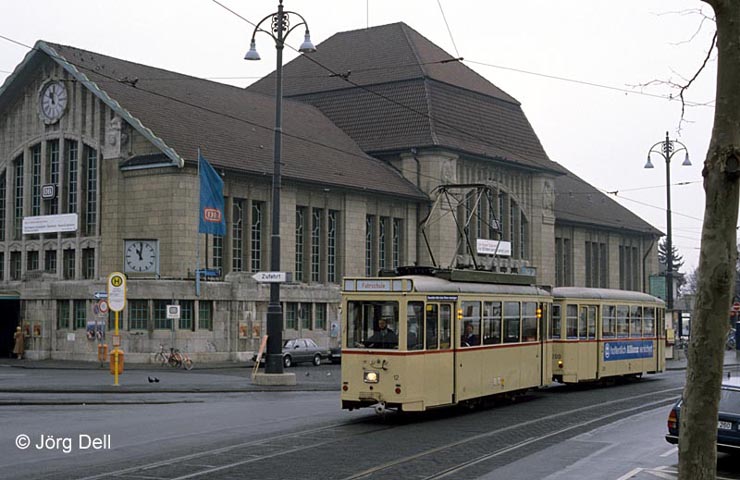 Nr. 12 mit Bw 200 als Fahrschulwagen vor dem Hauptbahnhof, 23.2.89.