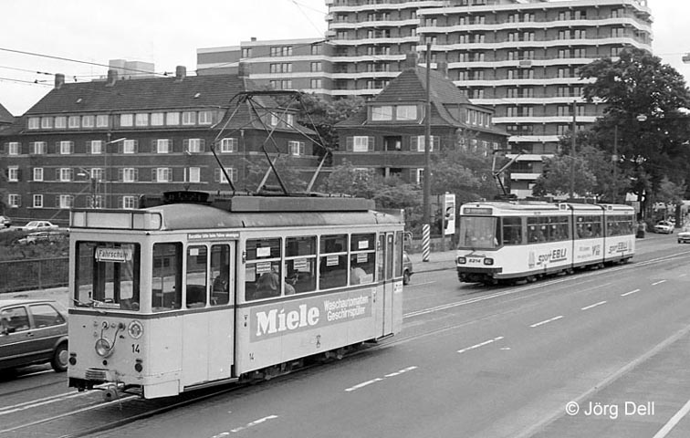 Alt trifft neu auf der Brücke über den Hauptbahnhof (24.5.91).