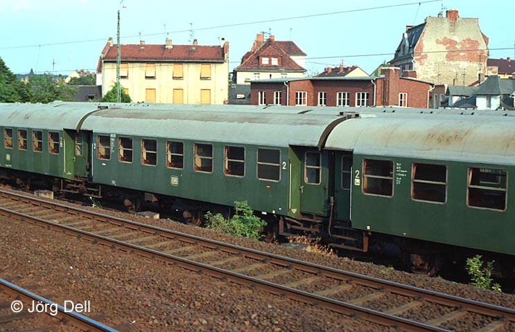 Offenbach setzte noch lange Zeit Umbaudreiachser ein. Der B3yge 88213 zeichnete sich dadurch aus, dass er nicht nur seine Wagennummer aus der Epoche 3 mitbrachte (was ja eher die Regel war), sondern auch die Anordnung der entsprechenden Beschriftung (11.07.1983, Offenbach)